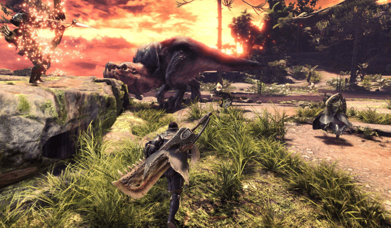 经深化的狩猎动作为全部14种武器追加新连续技和新要素,使各武器更具特色,玩家可以享受到更多元化的动作。所有武器的新动作“抓牢”利用投射器的追加扩张功能“飞翔爪”,发射钩爪并紧抓怪物。攀在怪物身上时虽然会消耗耐力,但会限制怪物的行动,衍生出新的战斗方式。